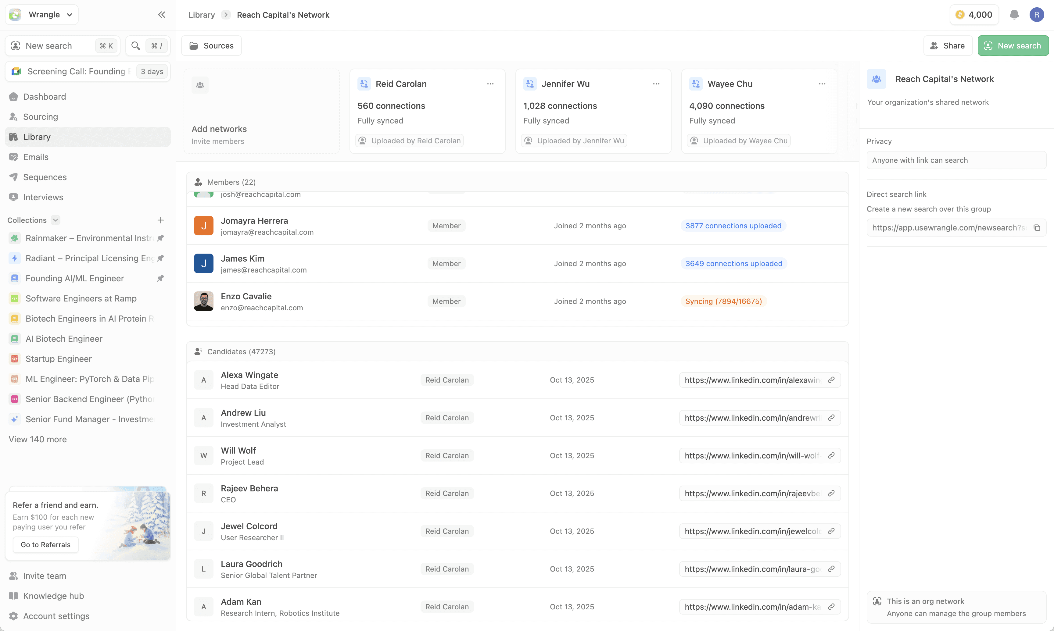 Connect partner and advisor networks to uncover warm paths to talent across portfolio companies.